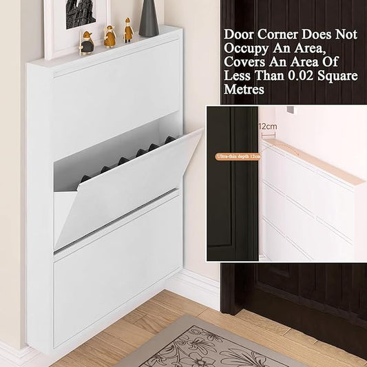 Meuble à Chaussures Métallique Mural avec Compartiments Abattants