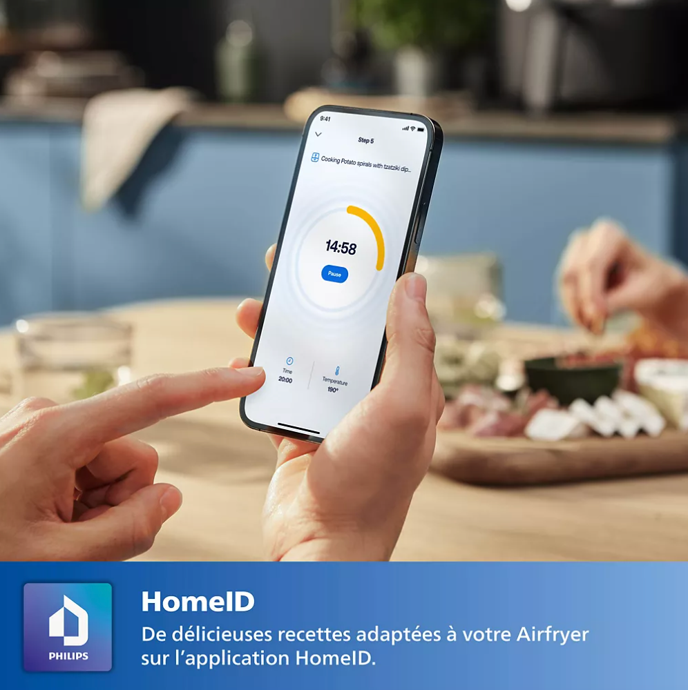 - Connectivité intelligent : Connectez votre Airfryer à l'application pour découvrir des recettes personalnalisées et les lancer à απόσταση.