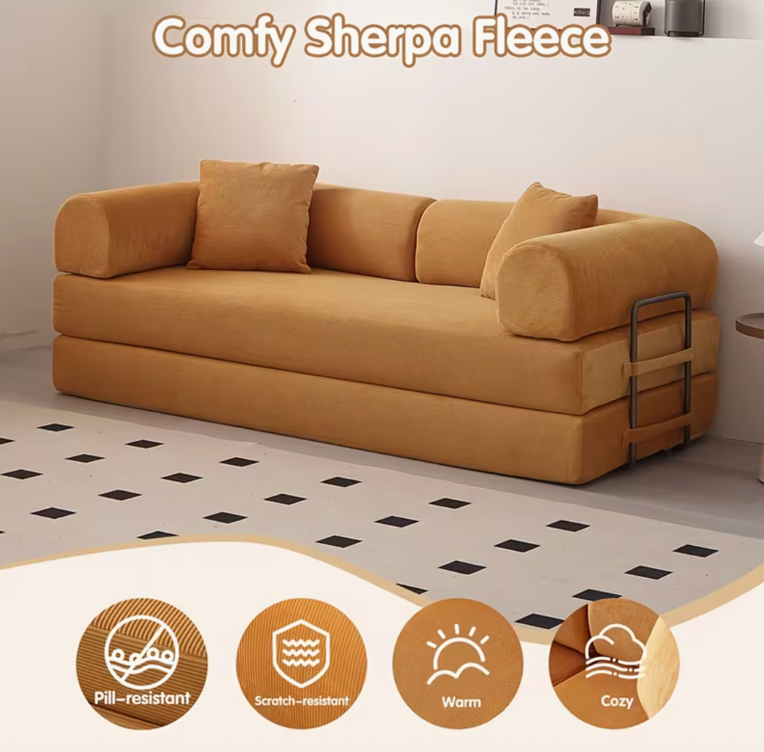 Grâce à son design pratique et fonctionnel, ce canapé-lit est parfait pour recevoir des invités ou optimiser l’espace dans les logements où chaque mètre carré compte. Il fait office de canapé principal en journée et de lit d’appoint lorsque nécessaire.